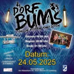 Am Samstag ist es soweit, unser Dorfbums geht in die nächste Runde! Die Vorbereitungen für euch laufen auf Hochtouren, der Festplatz wird vorbereitet und die